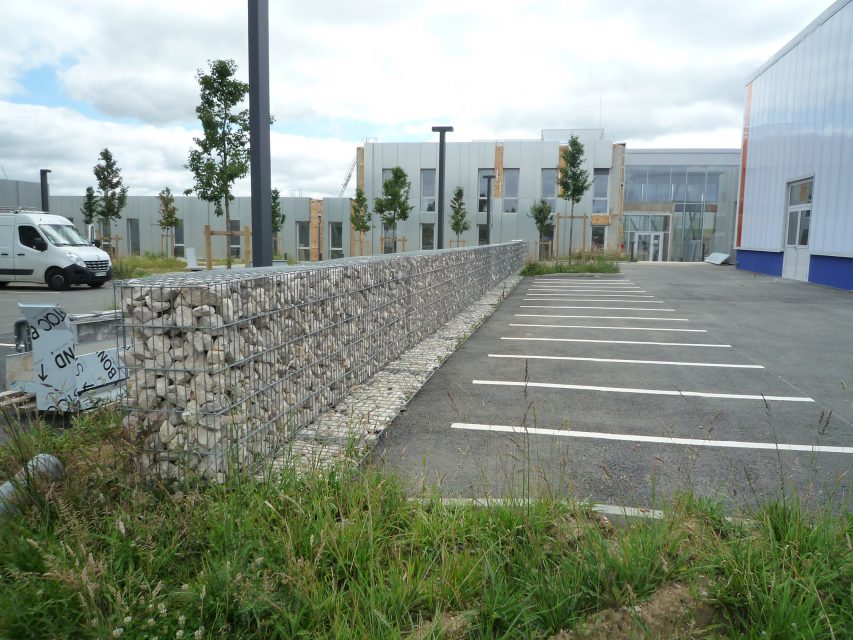 Le projet de gestion des eaux pluviales prévoit le stockage de l’eau à ciel ouvert avec des dispositifs de type noues de collecte et d’infiltration et des bassins. Des zones tampon sont également prévues pour ralentir les ruissellements (toitures végétalisées, toitures stockantes, enrobé poreux.).